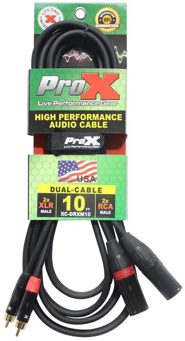 Our high-performance, tour-grade audio cables are not only tough but also feature Complete Coil technology, which enforces consistent weave tolerances, contributing to precise accuracy and detailed clarity in audio reproduction. This dual RCA to XLR cable is an essential tool for professionals who require uncompromised audio quality in their work. Whether you're connecting mixers, amplifiers, or other professional audio equipment, the ProX XC-DRXM10 is designed to deliver outstanding performance and reliability, ensuring that your sound is transmitted with the utmost fidelity. Choose the ProX XC-DRXM10 for your audio connections and join the ranks of professionals who trust our cables for their high-quality, professional-grade audio needs.