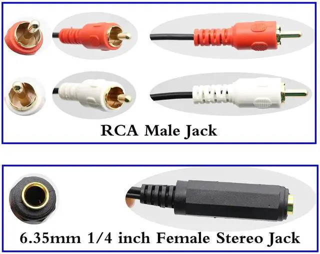 This 6.35mm to Dual RCA Cable split a stereo audio signal, 2 RCA Plug output left and right audio channel, delivers High quality, natural pure tone, no jitter audio signal.
