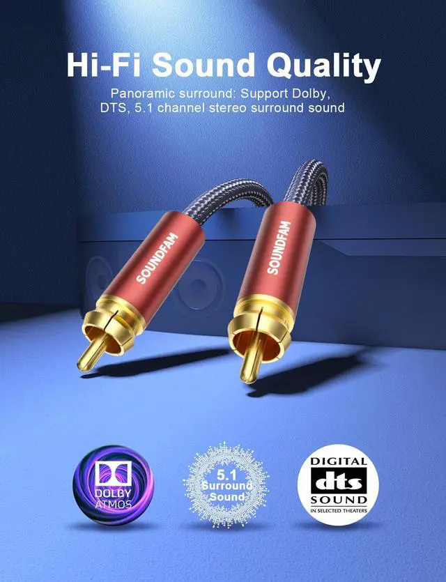![Alt view image 5 of 7 - Subwoofer Cable RCA to RCA, Dual Shielded (Copper+Aluminum Foil) Digital Coaxial Audio Cable for Home Theater, Stereo, Amp - [ 26ft/8M, Red ]](https://c1.neweggimages.com/productimage/nb640/C6FXD2604270NVQU49B.jpg)