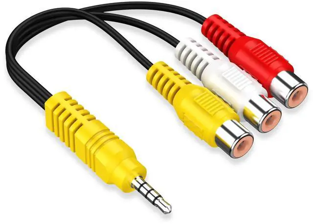 This high-quality stereo 3.5mm mini AV male to 3 RCA female adapter Plug and Play easy to use video display.