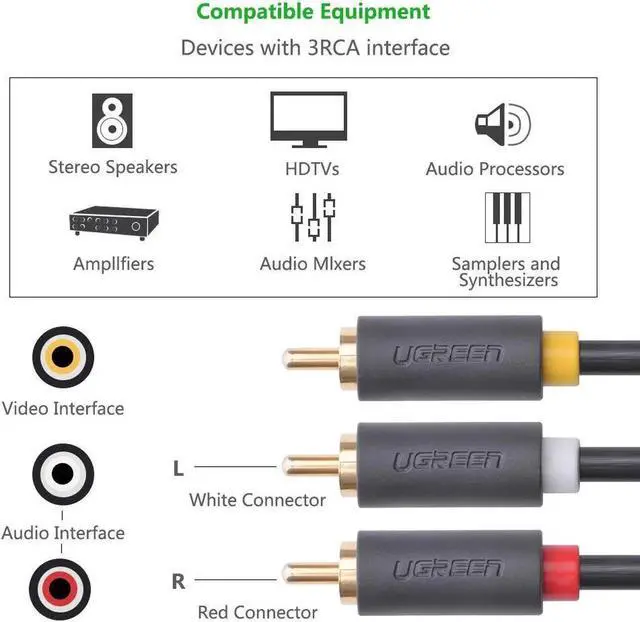 4. Works great with VCR, DVD, HD-TV, any other audio video equipment with 3RCA connectors;