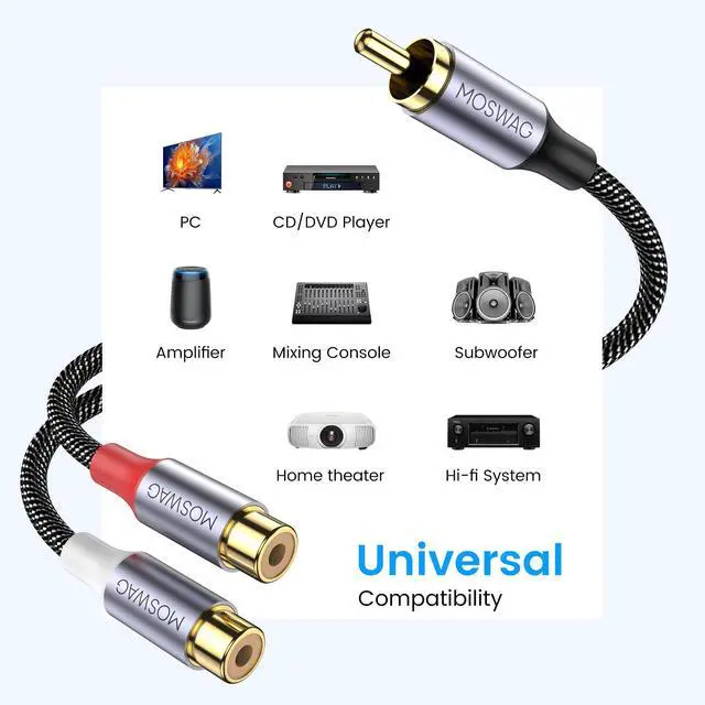 Perfect For Multiple Uses This is a professional audio quality RCA cable for transmitting high quality left and right audio signals. Ideal for subwoofers, home theater, HDTV, game consoles, Hi-Fi systems or other RCA devices with 2 RCA plugs.