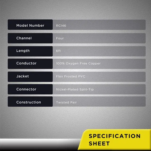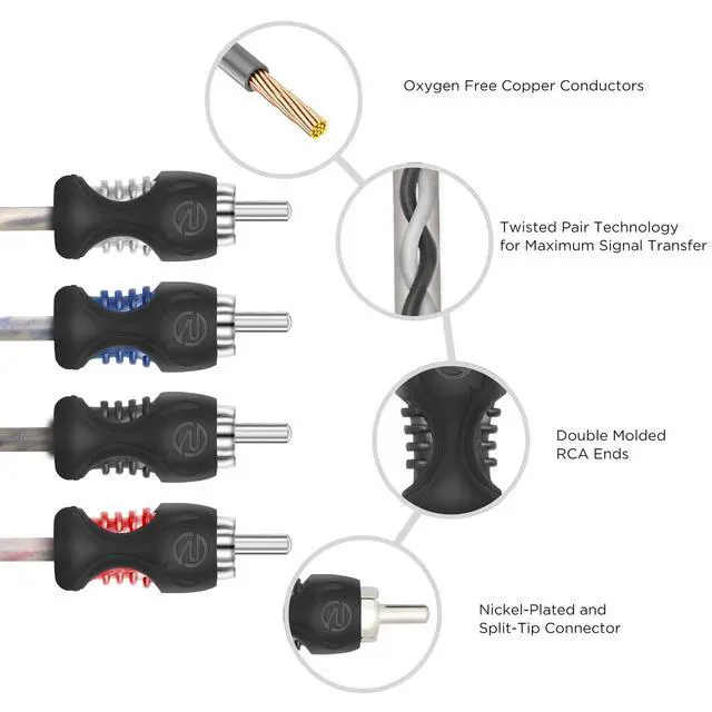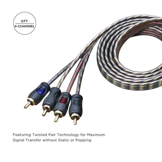 100% Oxygen Free Copper 4-Channel RCA Audio Cable, Twisted Pair with Noise Reduction (6ft)