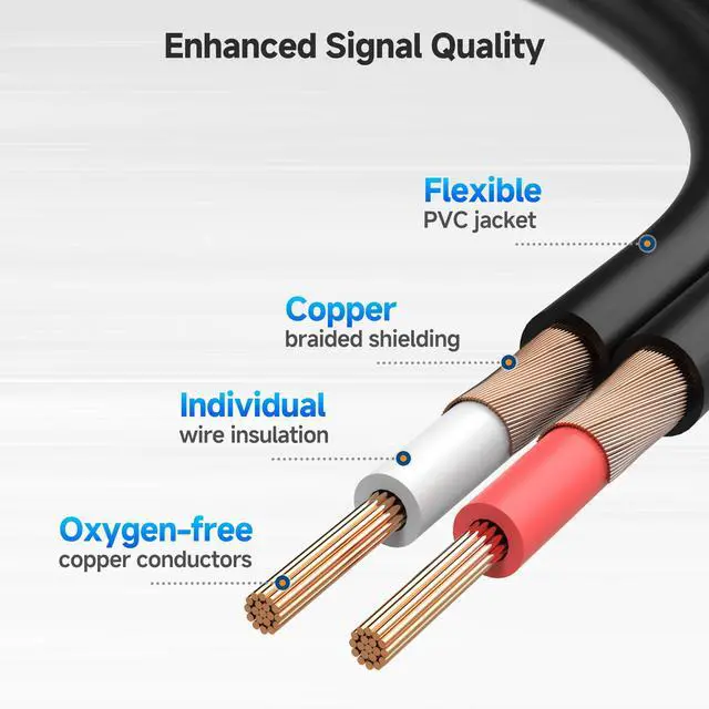Enhanced Stereo Audio Performance: Designed with oxygen-free copper (OFC) conductors to deliver pristine sound and bare copper braided shielding for superior noise rejection, this dual 1/4" TS to dual RCA cable ensures optimal signal clarity, delivering a clean, detailed audio experience with minimal distortion.