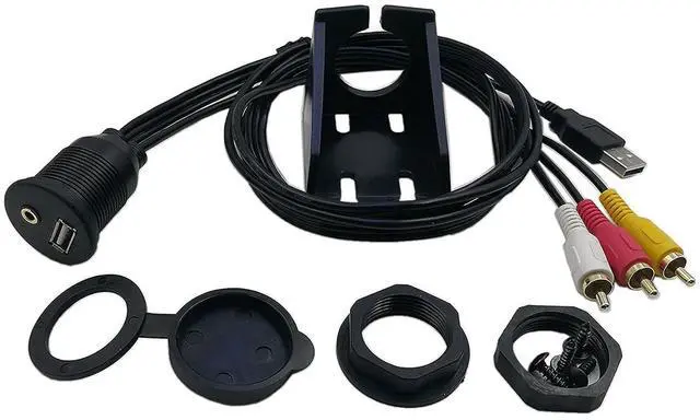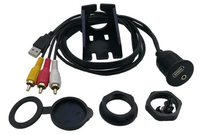 Connector: USB 2.0 male and 3RCA to USB & 3.5mm Female, Bracket included for easy mounting on your car's dashboard. 2-meter long cable with water-proof mount rubber cover.
