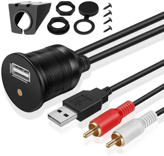 USB RCA Flush Mount Cable - This USB/RCA to USB/AUX extension cable allows you to DIY your car, boat, yacht, or other vehicles and devices the way you want; (Note: Please check the length before purchase)