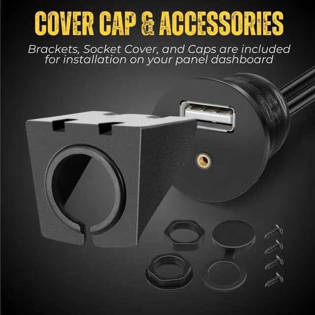 USB Port offers high data transmission and charging efficiency, and RCA for in-car stereo audio systems; Compatible with any stereo system that comes with USB/RCA input; Perfect for stereo installation on ATVs, UTVs, cars, and trucks, etc.
