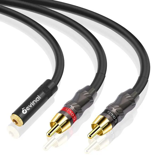 Stereo Breakout Cable This Dual RCA Male to Female 3.5mm breakout cable is designed to connect gear with stereo 3.5mm jacks to gear with stereo phono jacks. This cable allows you to plug a separate 3.5mm cable into this adapter and then connect to the left and right RCA auxiliary inputs on your sound system. Delivers high performance and versatile full range bass for your musical instrument audio device equipment.