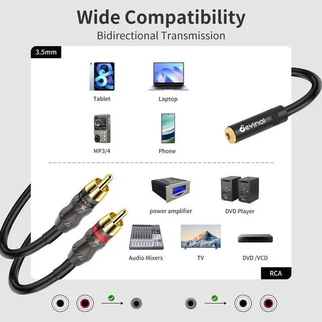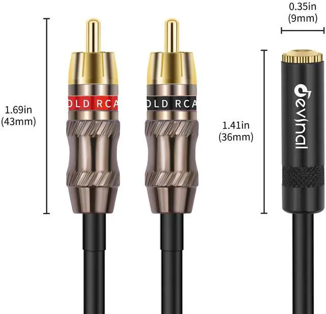 Durable Gold-plated 1/8 TRS and RCA plugs combined with high-quality metal housing improve durability. The flexible rubber jacket, made from environmentally friendly materials, enhances signal transfer. Polyethylene insulation improves high fre