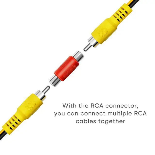 An RCA connector is included, allowing you to connect multiple RCA cables together or change the RCA male to RCA female.
