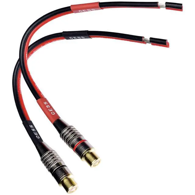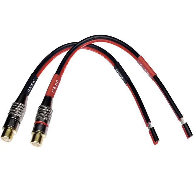 • Package includes 2 cables (2 RCA female jacks). Red wire is Positive and Black wire is Negative