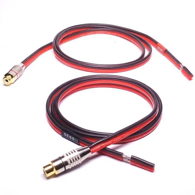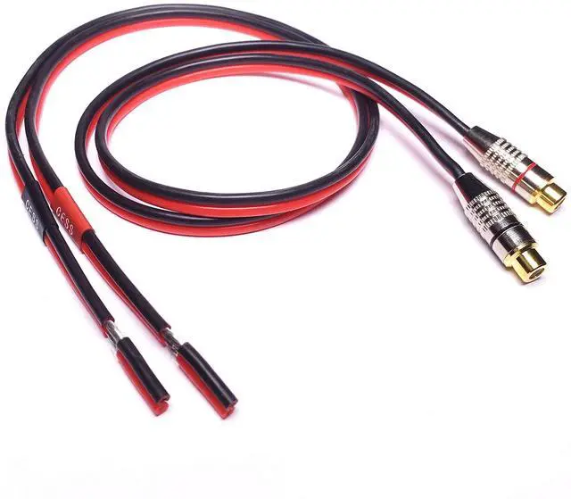 • Package includes 2 cables (2 RCA female jacks). Red wire is Positive and Black wire is Negative