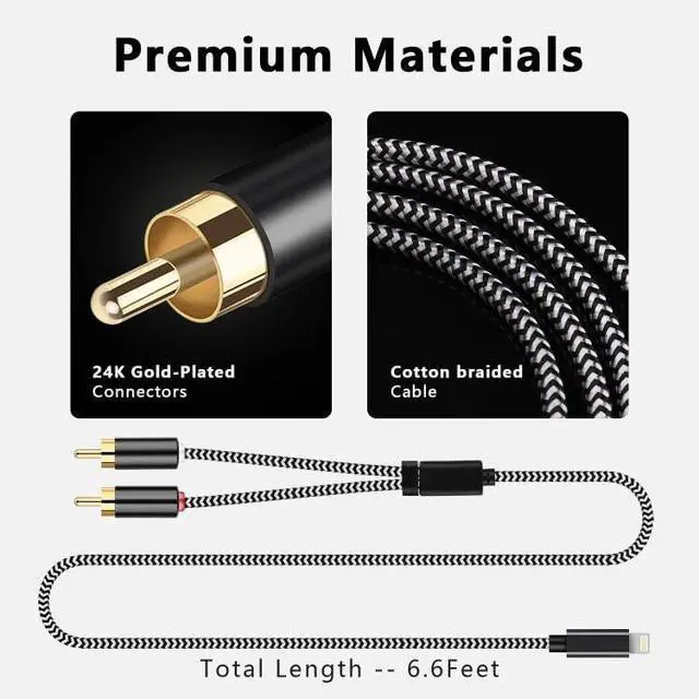 Compatible with iOS devices: This lighting to 2 Male RCA audio cable works seamlessly with various iPhone models, ensuring you won't have to worry about compatibility issues when connecting to speakers, stereo receivers, or any other RCA device.