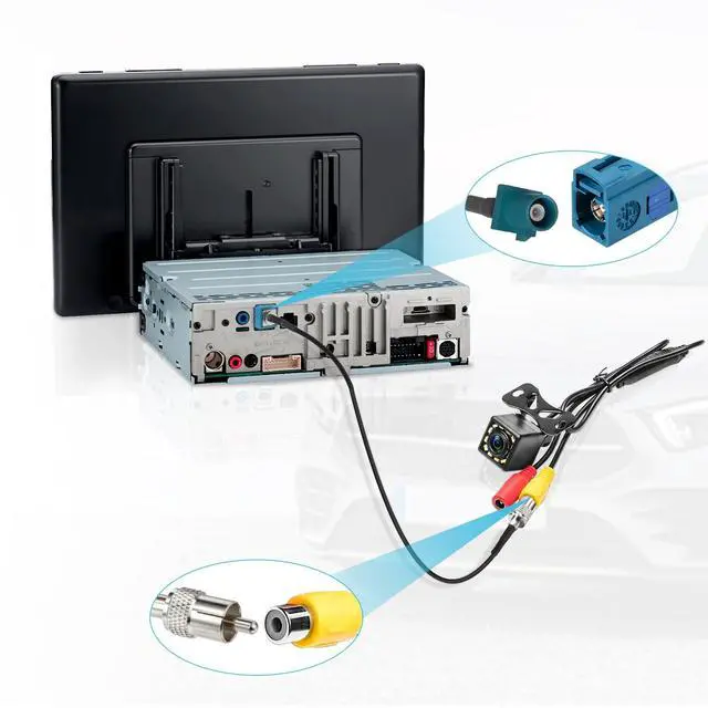 Compatible with ML-350, Sony XAV-AX8500 car audio systems, aftermarket radios, car head units, factory rear view cameras, audio control units, and similar devices. (Note: Not compatible with non-FAKRA female connectors or devices lacking RCA input ports.)