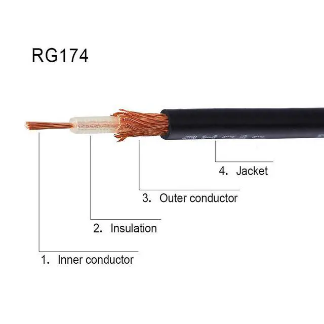 Cable type: RG174 coaxial cable, Length: 7.72 x 5.75 x 0.43 inches, Impedance: 50 Ohm