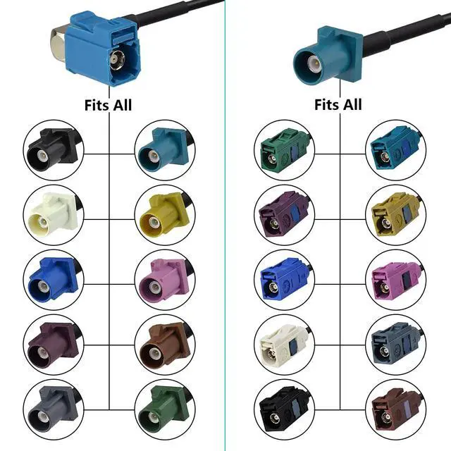 Connector 2: Blue Fakra Z plug male (Compatible with all Fakra female connectors)