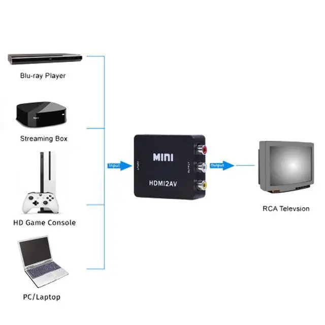 Connect high-definition player, DVD, set-top boxes, Blu-ray machines and so on.Can be watched by the common TV AV interface after converted.