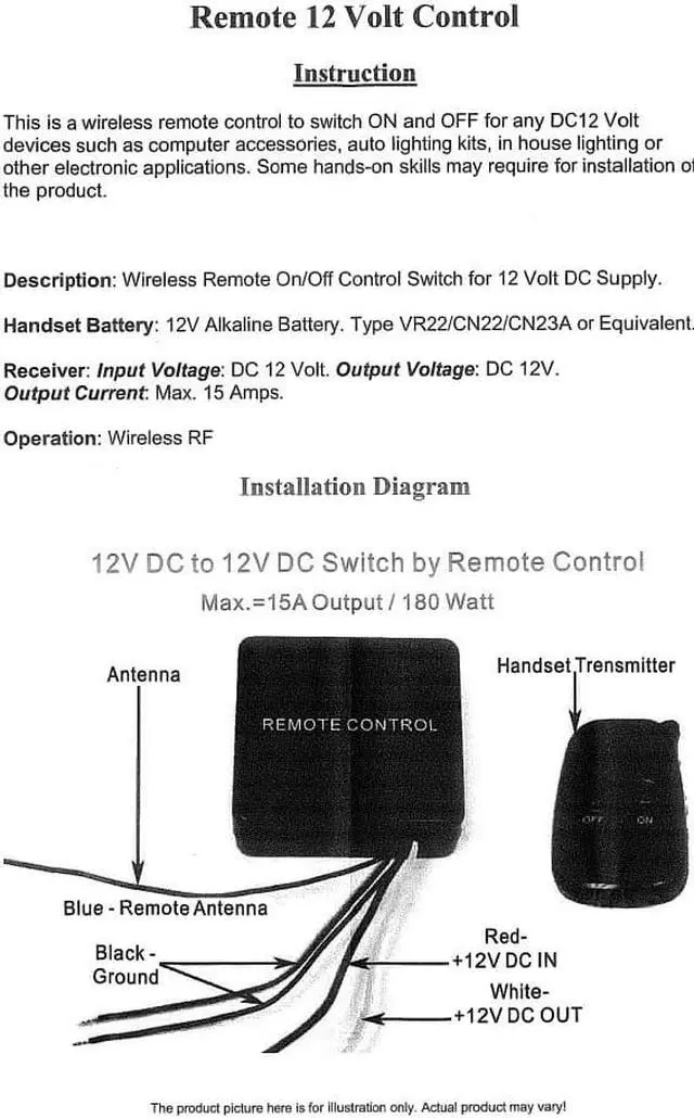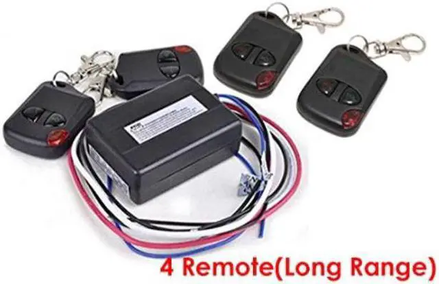 iMBPrice premium universal remote kit allows you to switch any 12v product on and off with a press of a button. Our heavy duty remote can handle up to 15 amps. The kits include four (4) matching wireless remote control key fobs with LED indicator and batteries, one (1) ultra compact receiver unit with anti-code grabbing technology and full installation instructions. Works on any 12v electrical system, cars, trucks, motorcycles, boats, car alarms, car doors and trunks, car lights, neon and LED lighting kits, garage doors, security doors, home alarms, home lighting, cabinet lighting, home theater lighting, and anything else that runs on 12 volt power.