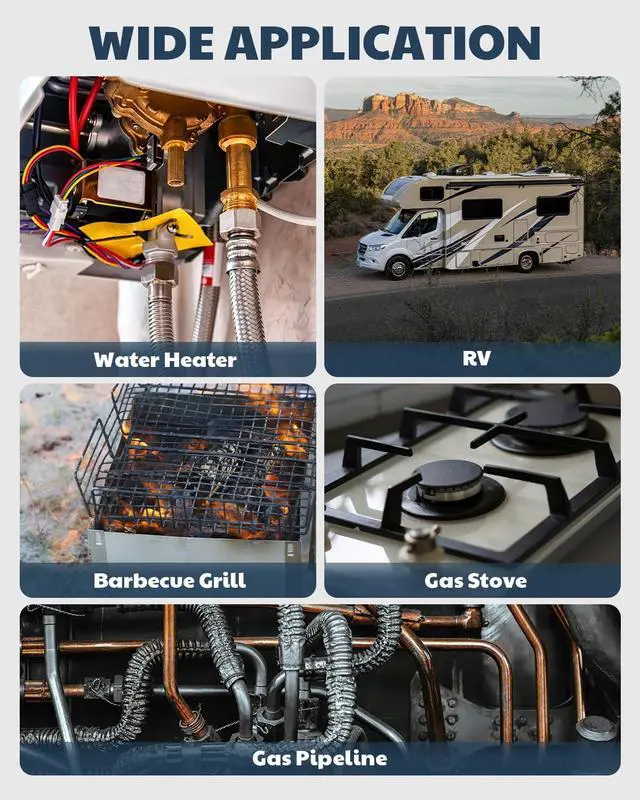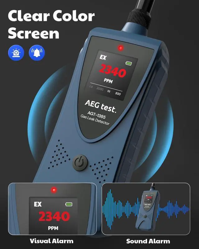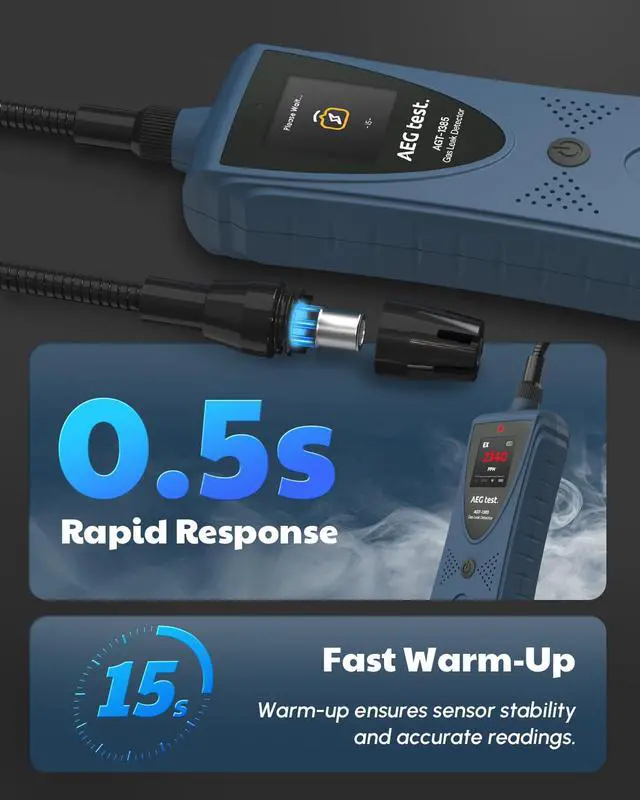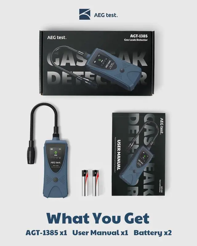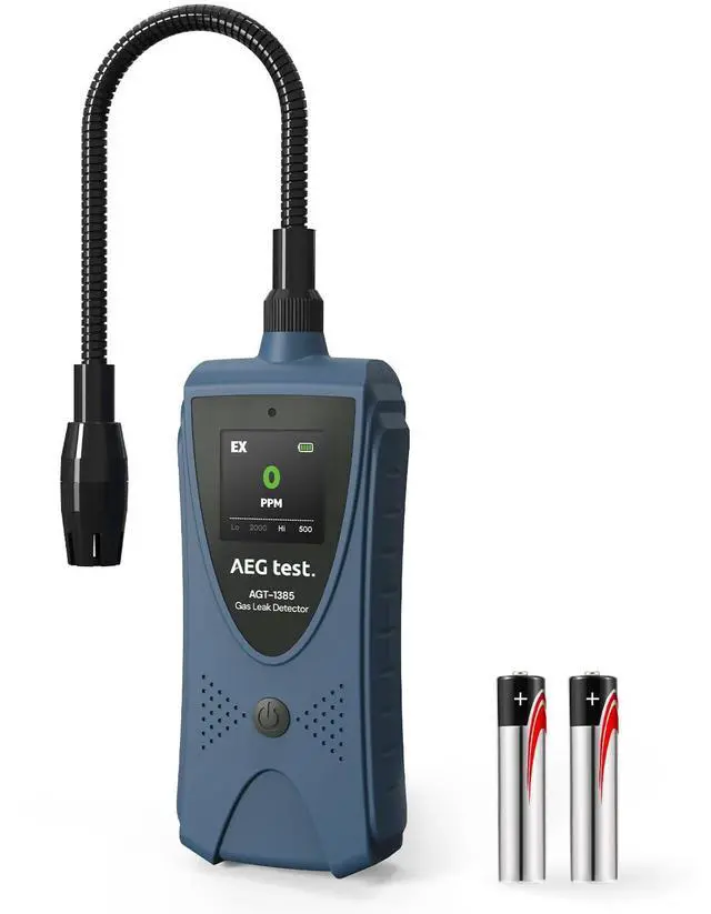 The AGT-1385 Gas Leak Detector can detect combustible gases such as natural gas, methane, and propane, and cannot replace a carbon monoxide detector or a sewer gas detector.