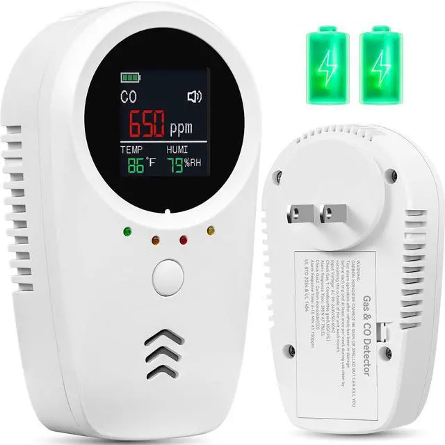 [5-in-1 Comprehensive Protection Detector with Built-in 1000mAh Backup Battery]This advanced 5 in 1 carbon monoxide detector and gas detector combines sensors for carbon monoxide, natural gas, temperature, and humidity. The built-in lithium battery offers up to 8 hours of continuous operation without AC power.With its robust performance,it offers all-around protection to ensure the safety of your household. The package includes:1x carbon monoxide and gas detectors,1 x User manual.You can enjoy unsatisfactory refund service!If you have any questions about this natural gas and carbon monoxide detector,please feel free to contact us.