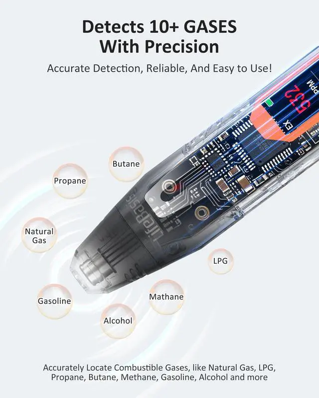 • 0.5S ULTRA-FAST RESPONSE & WIDE DETECTION RANGE: 0.5-second ultra-fast response time alerts you immediately when gas is detected. 0-9999 PPM wide detection range is suitable for detecting 10+ various combustible gas leaks. Accurately detecting even minute leaks, providing earlier warnings. Saves you from paying hundreds of dollars in diagnostics or wasting gas in an undetected leak.