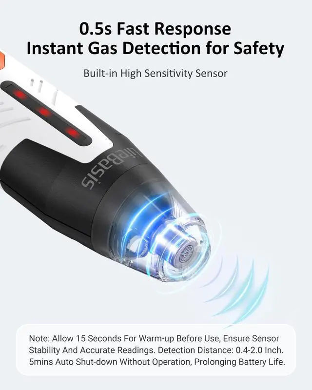 • RECHARGEABLE NATURAL GAS LEAK DETECTOR: Enjoy continuous detection with our built-in battery and long battery life, eliminating the hassle and cost of disposable batteries. It features a low battery warning and an auto-shutdown function that turns off the device after 5 minutes without operation, prolonging battery life.