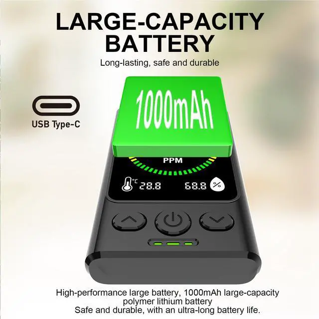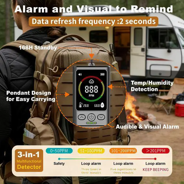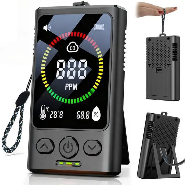 travel carbon monoxide detector1000mAh rechargeable lithium battery offers long runtime; USB-C charging is convenient. Compact, portable design comes with a foldable stand (for counters/handheld use) and lanyard looprv for rv carbon monoxide detector take it anywhere, use it easily.