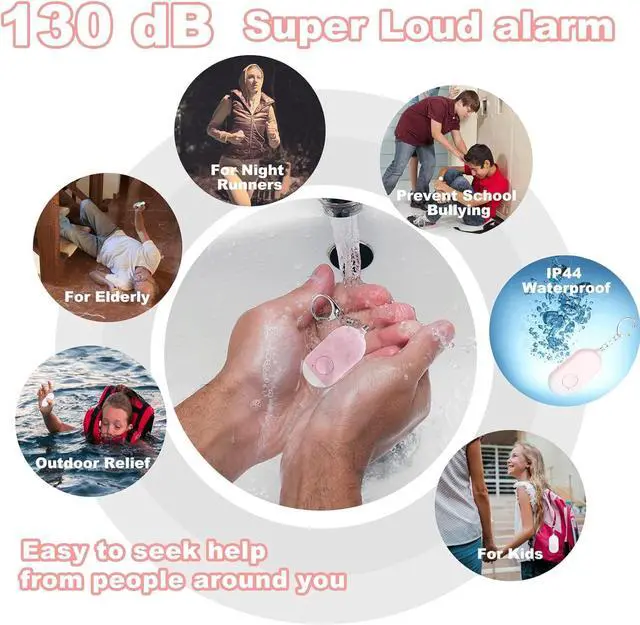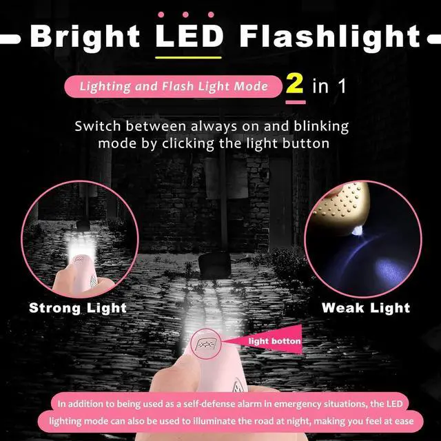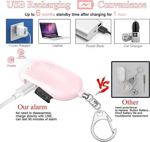 130dB Rechargeable Safety Alarm Keychain with LED Flashlight Upgraded Vibration Sensor for Women