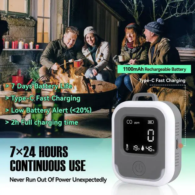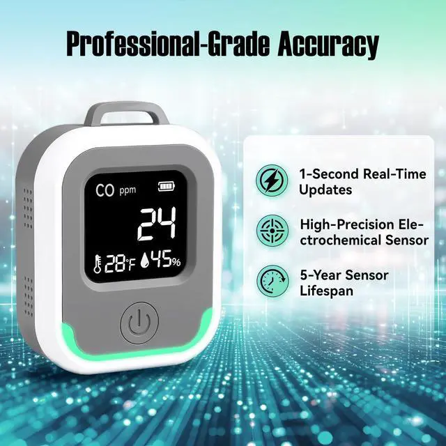 High Accuracy & Fast Response: Equipped with a high-performance electrochemical sensor, it updates readings every second for fast response to changing CO levels. The sensor is built to last up to 5 years, delivering stable and reliable monitoring performance to help you stay ahead of potential risks.