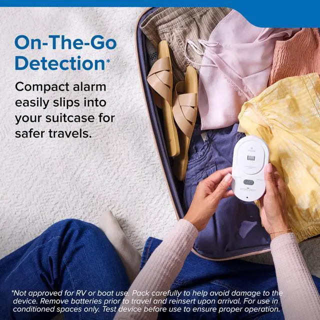 Take a CO alarm on your trip since not all hotels and rentals are required to have CO detection.*