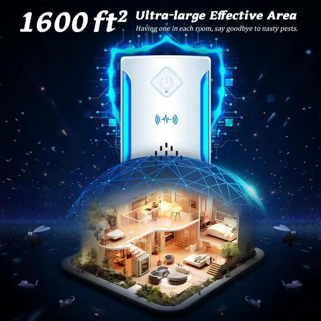 Voltage: AC 90V-250V, Ultrasonic Frequency: 10KHz-65KHz, Effective Coverage: 800~1,600 sq ft