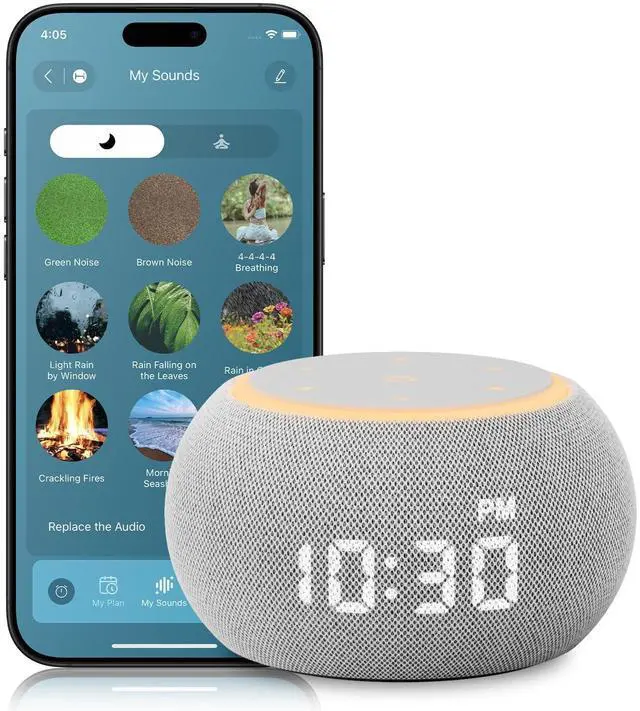 Santebee white noise sound machine with smart app control for full sleep cycle