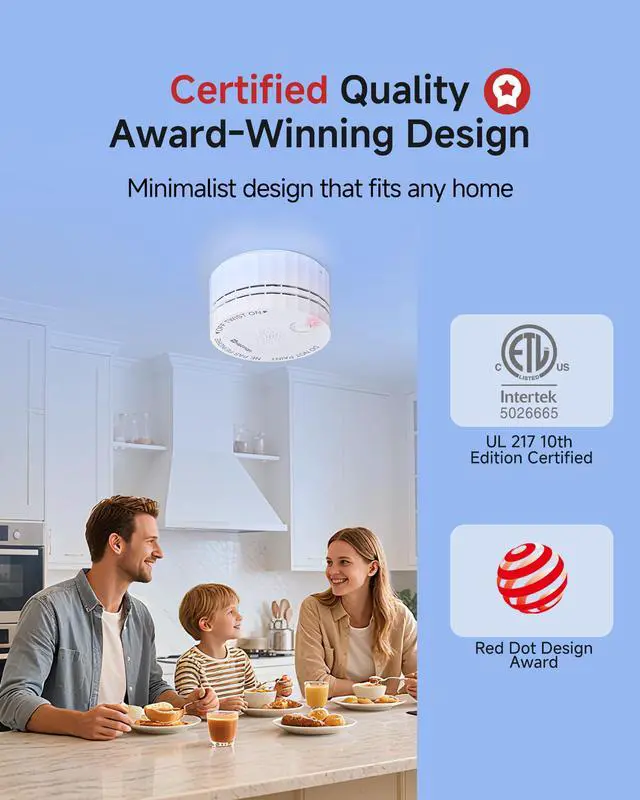 UL 217 10th Ed. Certified & Red Dot Awarded Meets the UL 217 10th Edition safety standard the newest and most rigorous smoke alarm requirement in North America. Its compact, purpose-built design earned the Red Dot Design Award in Germany, combining dependable protection with a clean, modern look that fits seamlessly into todays homes.