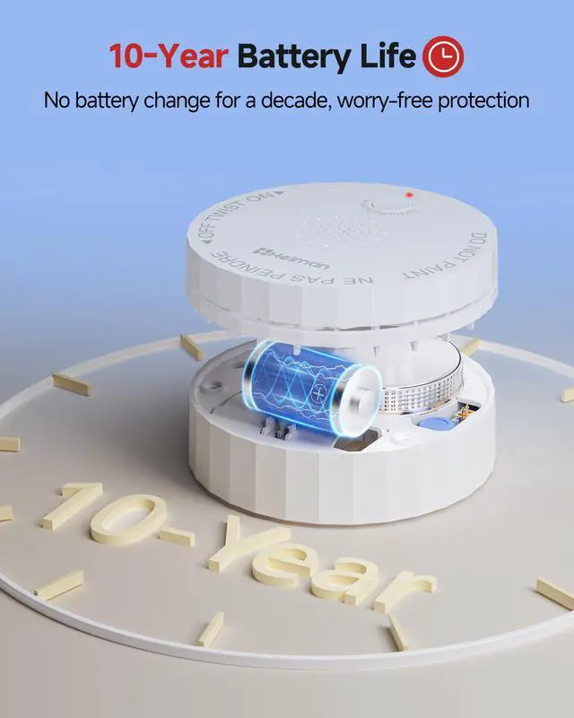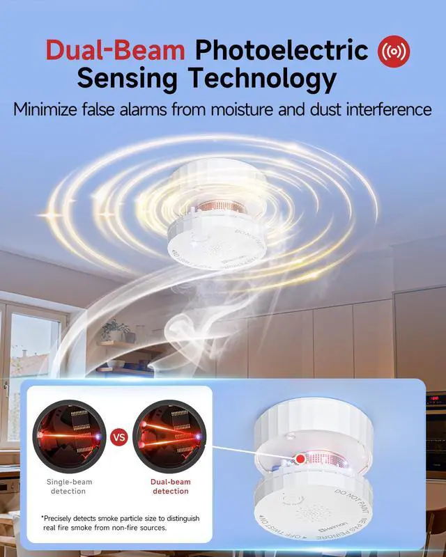 Advanced Dual-Photoelectric Detection Equipped with next-generation dual-beam photoelectric sensors, this battery-powered smoke detector precisely identifies smoke particle size and density for enhanced accuracy. It provides greater precision and reliability than traditional ionization fire alarms, offering exceptional sensitivity to faint smoke and slow, smoldering fires while intelligently minimizing false alarms caused by steam or cooking. Ideal for reliable home smoke detectors.