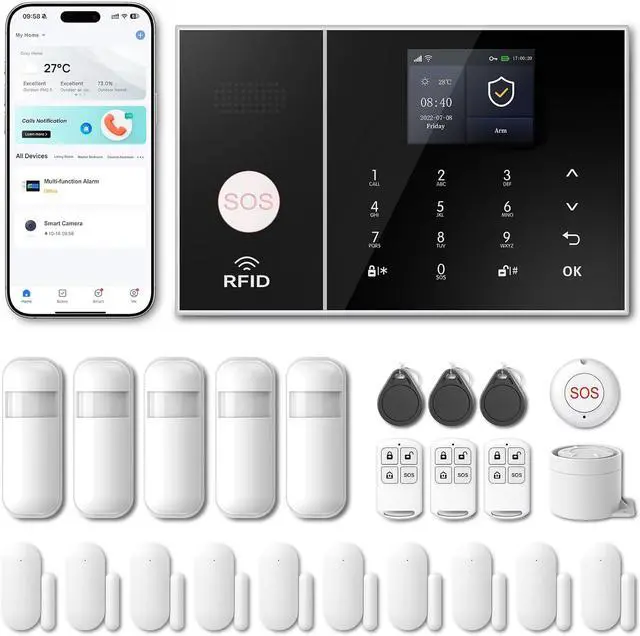 EASY TO lNSTALL+SOS EMERGENCY KEY:NO professional needed,just install by yourself, only need to fix the host panel to the wall(screws included),you can install it in minutes. Instruction manual is also included in the box. With time display and disarm/arm display, the status of the host panel looks simple and generous , you can always know the status of the alarm.One-click SOS button,In an emergency, press the SOS button in time to protect your family's safety.