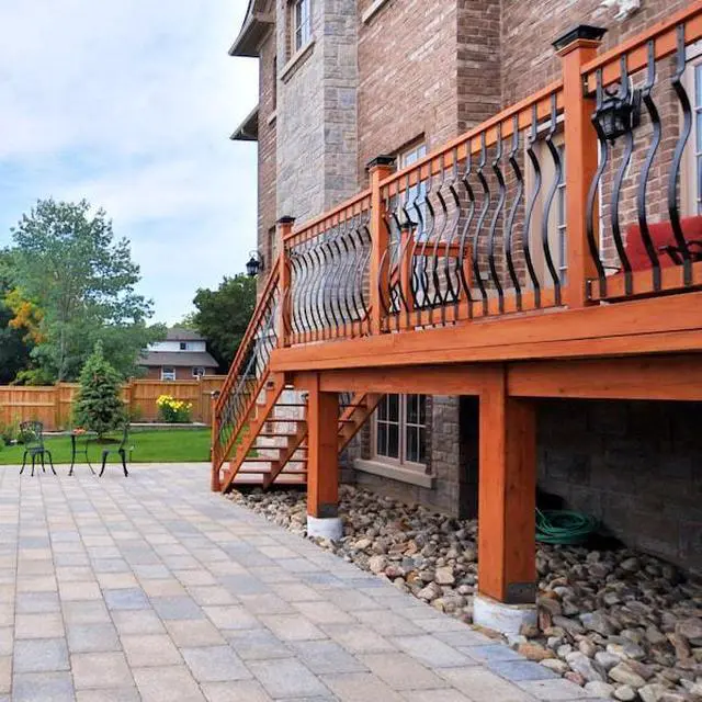 - Connect 5.5" x 5.5" wooden posts to concrete footings for deck supports.