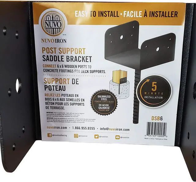 It’s in the details. Add an extra touch of design to a functional and structural support element. Our Nuvo Iron Saddle Brackets Connect 5.5" x 5.5" wooden posts to concrete footings for deck supports with ease! Offer greater installation flexibility and strength. The product should be installed in wet or hardened concrete (with anchoring adhesive).