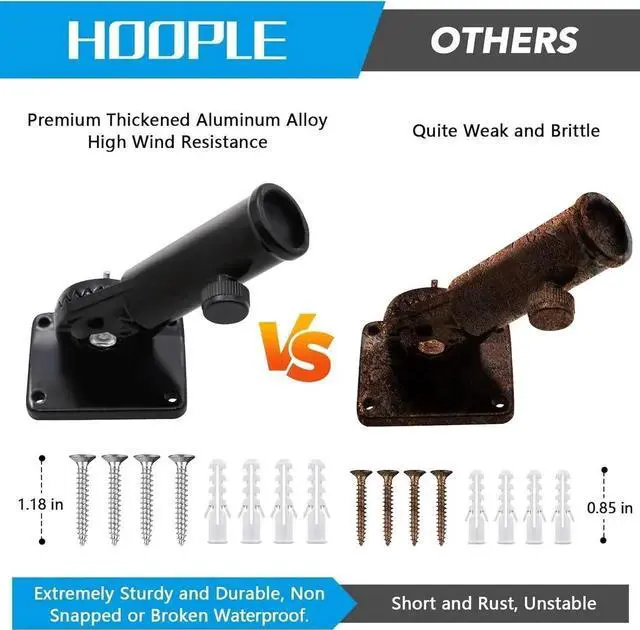 Heavy Duty Flag Pole Holder Bracket: HOOPLE Flag Pole Holder. Being the sturdy mount of the greatest Flag. Our flag pole holder is made of premium aluminum alloy and long lasting powder coated finish, which wont fade or rust for years and can make the flag pole base heavy duty and long lasting.