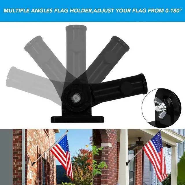 Multi Angles Design: HOOPLE wall mount flag pole holder for outside house adopts adjustable design, multi angles design makes the flag holder can be adjusted within a 180 degree range totally 13 different positions to perfectly display your flag. The flag pole bracket can be mounted anywhere with any angle. Designed for most 1-inch flag pole. Theres no better way to show your patriotism.