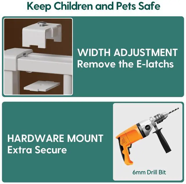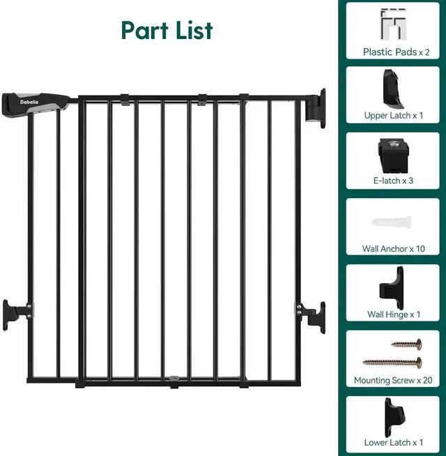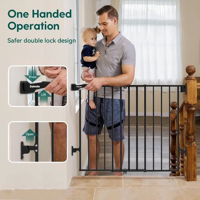 26-43" metal baby gate is specifically designed for stairs and bannisters, and the width of the safety gate can be adjusted to fit top or bottom of stairs, doorways and hallways. For added hands-free convenience, it is equipped with an auto-close feature that gently closes the door and a stay-open feature that keeps it open. it can be opened easily with one-hand operation. Unlike pressure-mounted gates, the hardware mounted gate will open the full width of the stair for easy walk-through; and the sill-free design minimizes tripping. Using all-steel material and double lock design, not only resist the impact of pets but also prevent children from opening the door. Provide a safe growth environment for your children and pets. Simple and fast hardware installation, and the gate can be quickly removed out of the opening for easy storage. We provide 24-hour after-sales service, if you have any questions, please feel free to contact us.