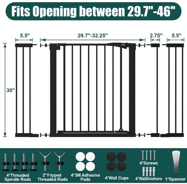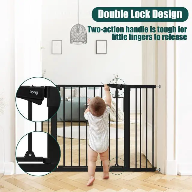 Safe and Happy Growing Environment for Baby There are so many hazards around the home, particularly when you consider todays trend for open plan living. That's why a baby gate is so important, so here is the best baby gate of our favorites. 30"-40.5" wide baby gate. With double lock design,auto close feature and durable metal material, 30"-40.5" wide baby gate is suitable for the family with kids and pets.
