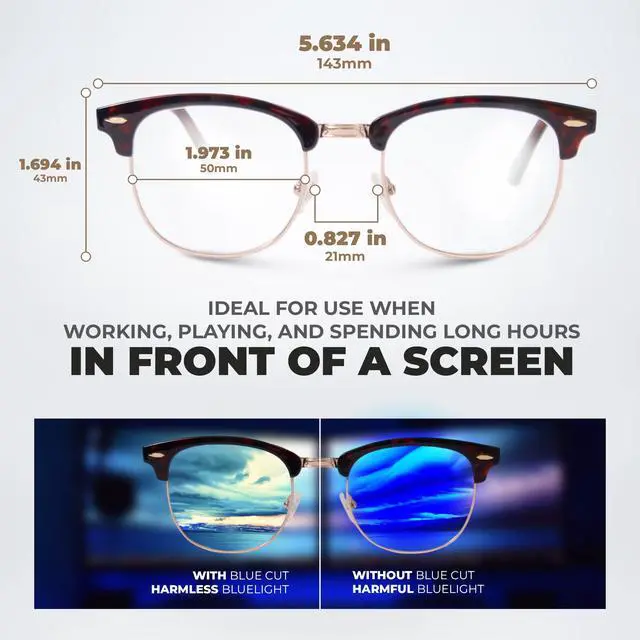 In the digital age, blue light exposure is almost impossible to avoid. Therefore it is so important to use computer blue light blocking glasses which block your screen’s harmful blue light making it easier for your eyes to stay focused and efficient all day long.