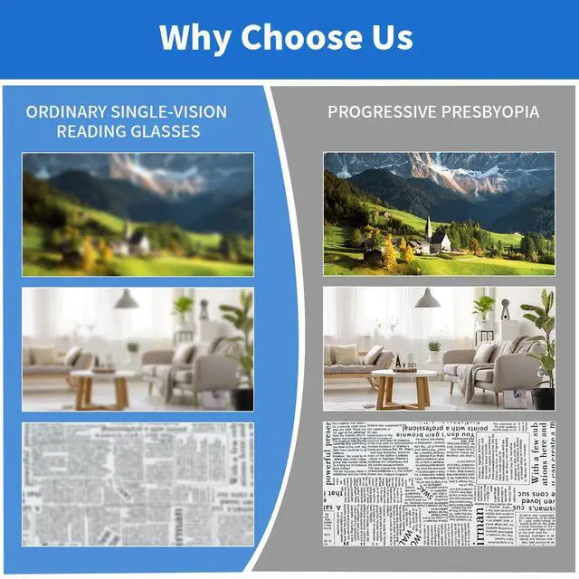 Auto Focus Technology: Say goodbye to the inconvenience of multiple anti-blue light presbyopia glasses. Our reading glass adjust the focal length automatically, making them perfect for various activities.