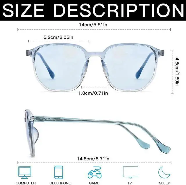 GLEASANNA 99.9 % Blue Light Blocking Glasses For Men Women Anti-Fatigue Computer Gaming Sleep Glasses Reduce Eye Strain