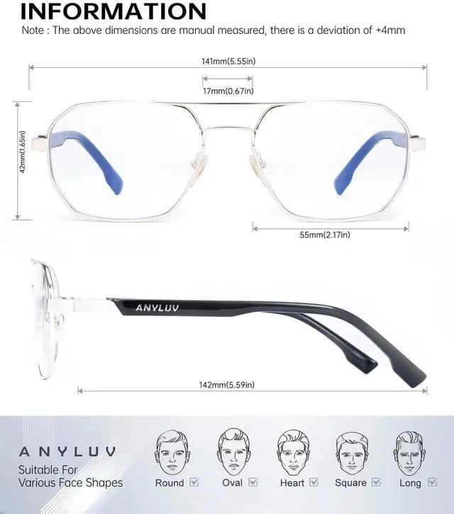 Stylish and classic design: These women's blue light glasses combine tradition with a modern approach by adding subtle design details. The classic curved shape and double bridge between the eyebrows and ANYLUV logo adorned eyeglass legs are very sophisticated and stylish. These anti-blue light glasses for mens help to present a sophisticated look that complements any outfit.