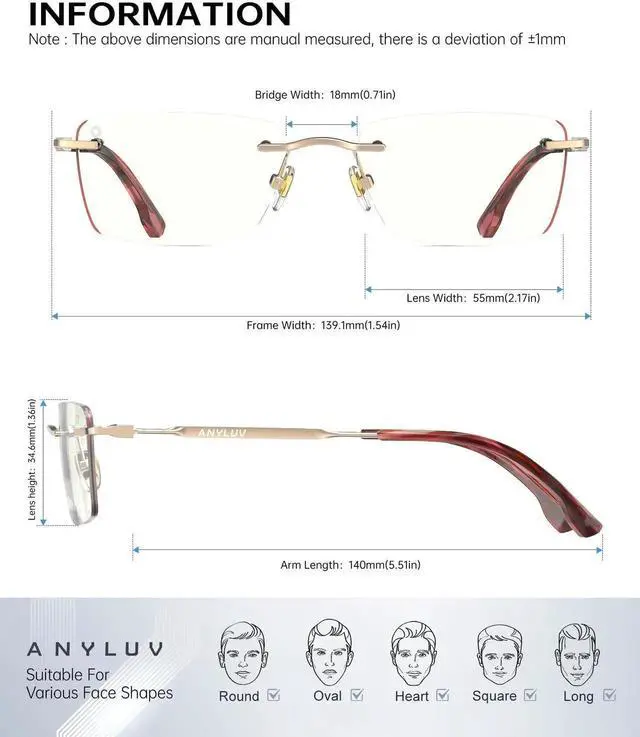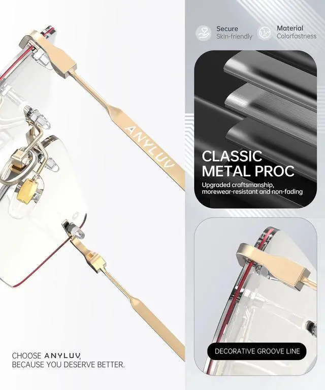 Zero Pressure Frameless Design: ANYLUV rimless construction eliminates pressure points, while flexible Metal hinges fit all face shapes whether you're a man needing durable blue light glasses men style or a woman seeking minimalist elegance.