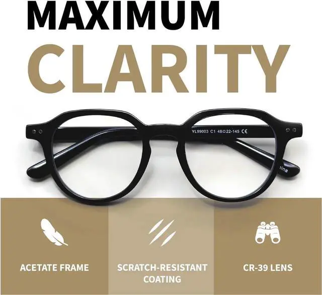 COMFORTABLE FOR READING Clear CR-39 lenses protect your eyes from digital glare without magnification. Perfect for men who want stylish reading eyewear that prevents fatigue during long hours with books or e-readers.
