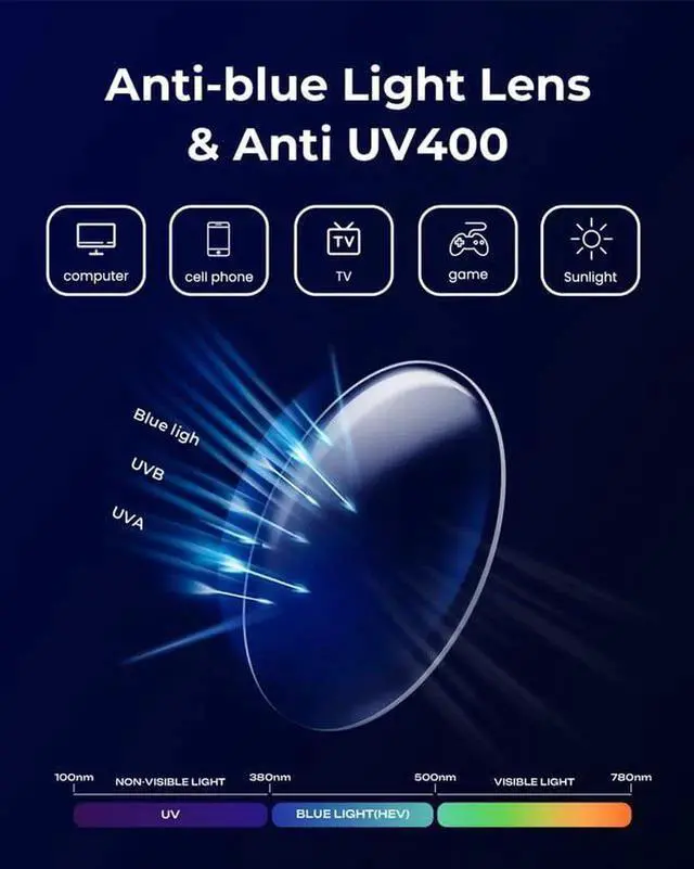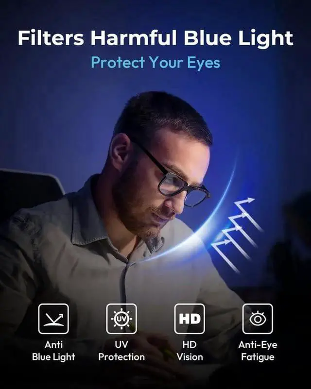 Advanced Blue Light & UV400 Defense : Designed for prolonged screen time, these blue light blocking glasses filter up to 98% of harmful blue light (380-450nm) and UV rays. Ideal for women and men experiencing digital eye strain from work, gaming, or scrolling.