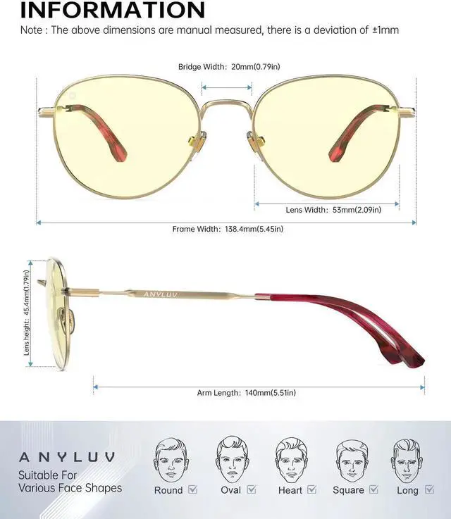 lue Light Blocking Clear vision: ANYLUV Blue Light blocking glasses filter harmful wavelengths (380-450nm) from screens. HD lenses prevent color distortion so you can see more clearly in dim zones while reducing migraines after 8-hour COD marathons.