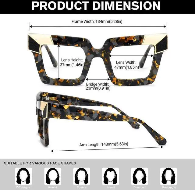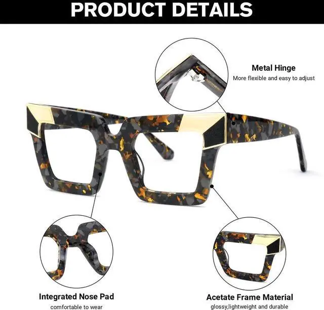 Zeelool Blue Light Blocking Glasses, Acetate Sqaure Glasses Frame for Women Eyeglasses with Clear Lenses Anti Eyestrain & UV from Computer/TV/Phone ZJGA675299-03B Tortoise